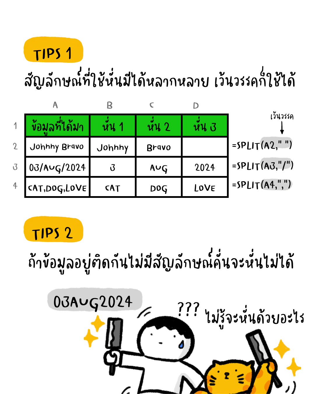 SPLIT / TEXTSPLIT ฉบับการ์ตูน SPLIT / TEXTSPLIT ฉบับการ์ตูน มาหั่นข้อมูลให้ขาดฉับๆ กันเถอะ! Share this: Share on X (Opens in new window) X Share on Facebook (Opens in new window) Facebook Like Loading... Related